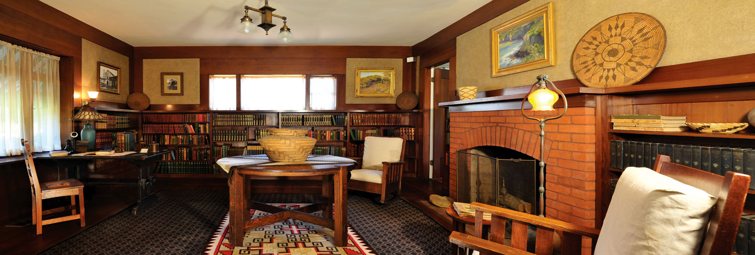 The library was George Marston's home office and space to enjoy his collection of maps and books. The built-in bookcases hold hundreds of titles, necessary for a family of avid readers and writers. Photo by Sandé Lollis |