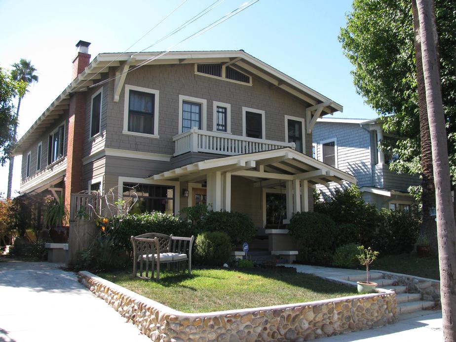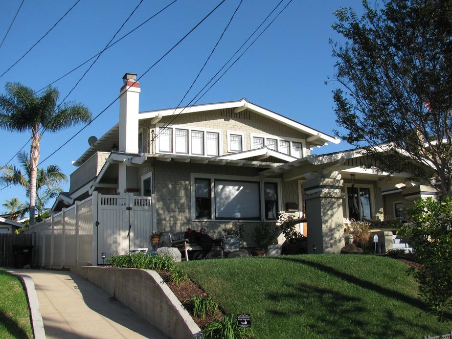 1809 West Montecito Way in Mission Hills was constructed in 1914 by a third master builder, Nathan Rigdon. Representing the Craftsman era, this house features a low-pitch gable with deep eaves and decorative brackets. This house is also designated under criteria C and D, for representing the Arts & Crafts period and as an excellent resource designed by the Master Builder early in his career. |
