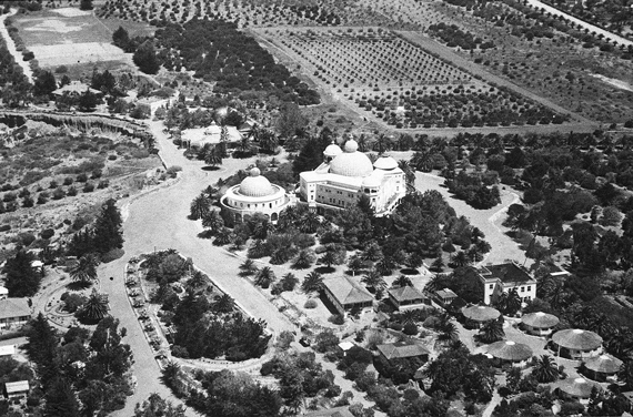 A bird’s-eye view of the Lomaland campus in the 1920s, shows the diamond-shaped Homestead Building and the round Temple of Peace, famed for its oversized colored-glass domes. Once home to a thriving Theosophical Society on Point Loma, Lomaland is the subject of historian Eric DuVall’s March 14 Penning the Past Zoom lecture exploring the ideals, architecture, and personalities of this ambitious and artistic community. Courtesy Theosophical Society, Pasadena |