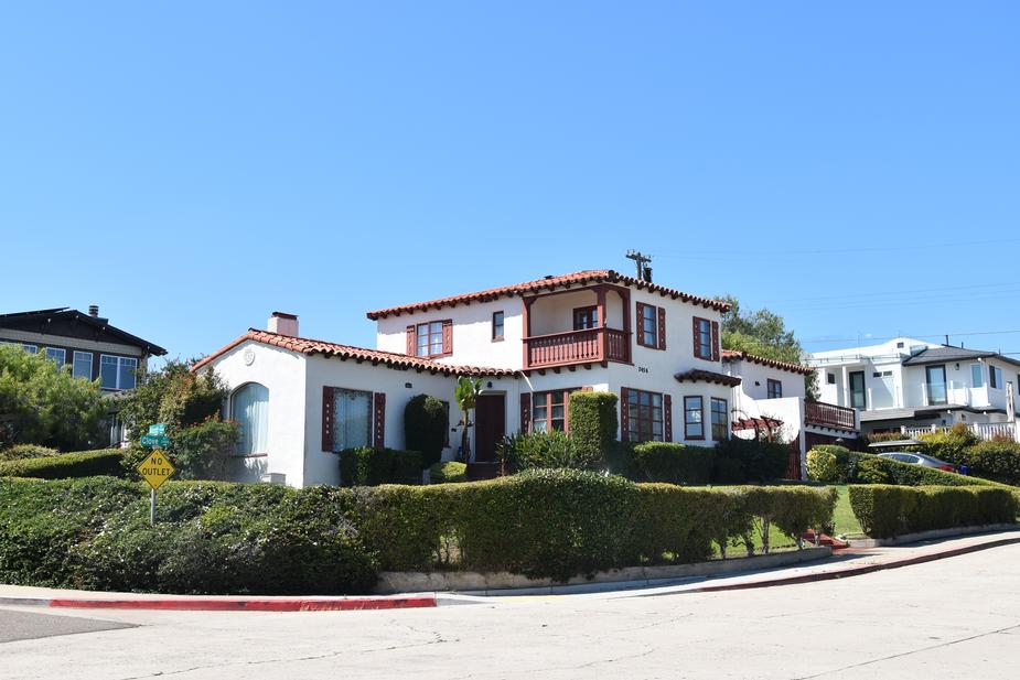 1124 F Avenue is a Mediterranean Revival style house with a detached car portico built in 1919. It merits historic designation under two criteria: (A) as a special element of Coronado military history and (B) for architecture that retains integrity and embodies key features of the style. Former owner Madeleine Sharp donated the house to the Red Cross Coronado branch for its headquarters during World War II. The house retains these elements of the Mediterranean Revival style: simple and imposing massing, two-story height, hipped roof with red clay tiles, boxed eaves with large brackets along the cornice lines, classical columns, articulated window surround, divided-light windows with no trim, and Churrigueresque style sculptural elements around the main entry door. It is one of the only architect-designed, Mediterranean Revival Style estates to be built along or near Ocean Boulevard. Because of that proximity and high level of style, the house is recognized as one of Coronado's earlier, high-profile residences. Pasadena-based architect Elmer Grey designed it, his only project in Coronado. Courtesy Zillow |
