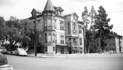 The three-story Southwest Institute building at Third and Elm Streets, completed in 1887, housed what was considered San Diego’s choice school. It closed in 1890, and became a family hotel, the Albatross Inn.) |