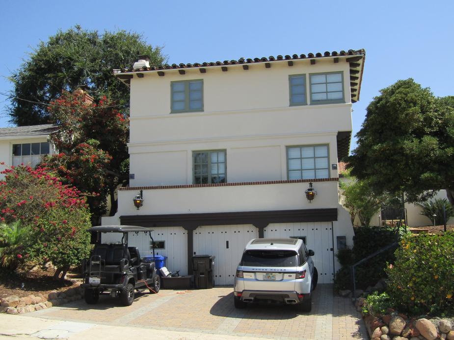 2477 Marilouise Way in Uptown’s Presidio Hills area is the Peterson Lumber & Finance Company/Virgil Cash Spec House #1. This house embodies character-defining features of the Spanish Colonial Revival style with Art Moderne influences and retains integrity from its construction in 1935. It meets HRB Criterion C for architecture, with its asymmetrical facade; low-pitched tile roof with little eave overhang; unenclosed eaves; varied roof forms, including hipped and shed; smooth stucco exterior; decorative beams; wood-framed casement windows and a deep-set decorative window; and porte-cochere with square columns and tile roof. The Art Moderne influence can be seen in the steel corner focal window. The house is also designated under HRB Criterion D as a notable work of proposed Master Builder Virgil Cash, a designer of high-quality residences and commercial properties in the San Diego area during the early 1930s through the early 1950s. It is significant as the only known example of Cash’s transitional period, when he experimented with incorporating Art Moderne design features and fenestra steel windows, a technology that was previously limited to factories. The board’s designation includes acceptance of Cash as a Master Builder. It excludes the 2019 second-story addition and the garage/companion unit. |