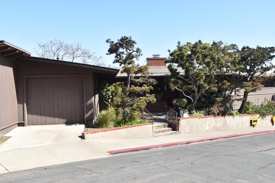 825 Harbor View Place in La Playa is the Lyle and Emily Carringer/Loch Crane House, an Organic Geometric style residence built in 1951. For its architecture and its architect, the house merits designation under HRB Criteria C and D, respectively. Organic Geometric elements include its irregular form; recessed entry; cedar siding with brick accents; low-pitched roof with varying forms and wide overhanging eaves; exposed rafters; large porch; windows in a variety of styles, including fixed and casement metal sash, clerestory, jalousie, and picture windows; and attached garages. This designation elevates Loch Crane, the nominated master architect, to the City's roster of master architects. He was a prominent and accomplished architect and a leader in San Diego’s Modernist movement. The Carringer House is a notable early example of Crane's custom residential work in the Organic Geometric style, which he continued to explore in later designs. Characteristic of Crane's architecture are dominant geometric forms, site-specific design, and a strong indoor connection with exterior views. The designation excludes the 2017 porch enclosure. |