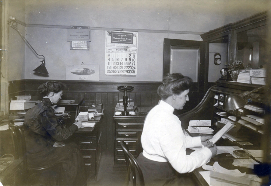 A 1910 office view, by this time a large number of administrative staff were female.