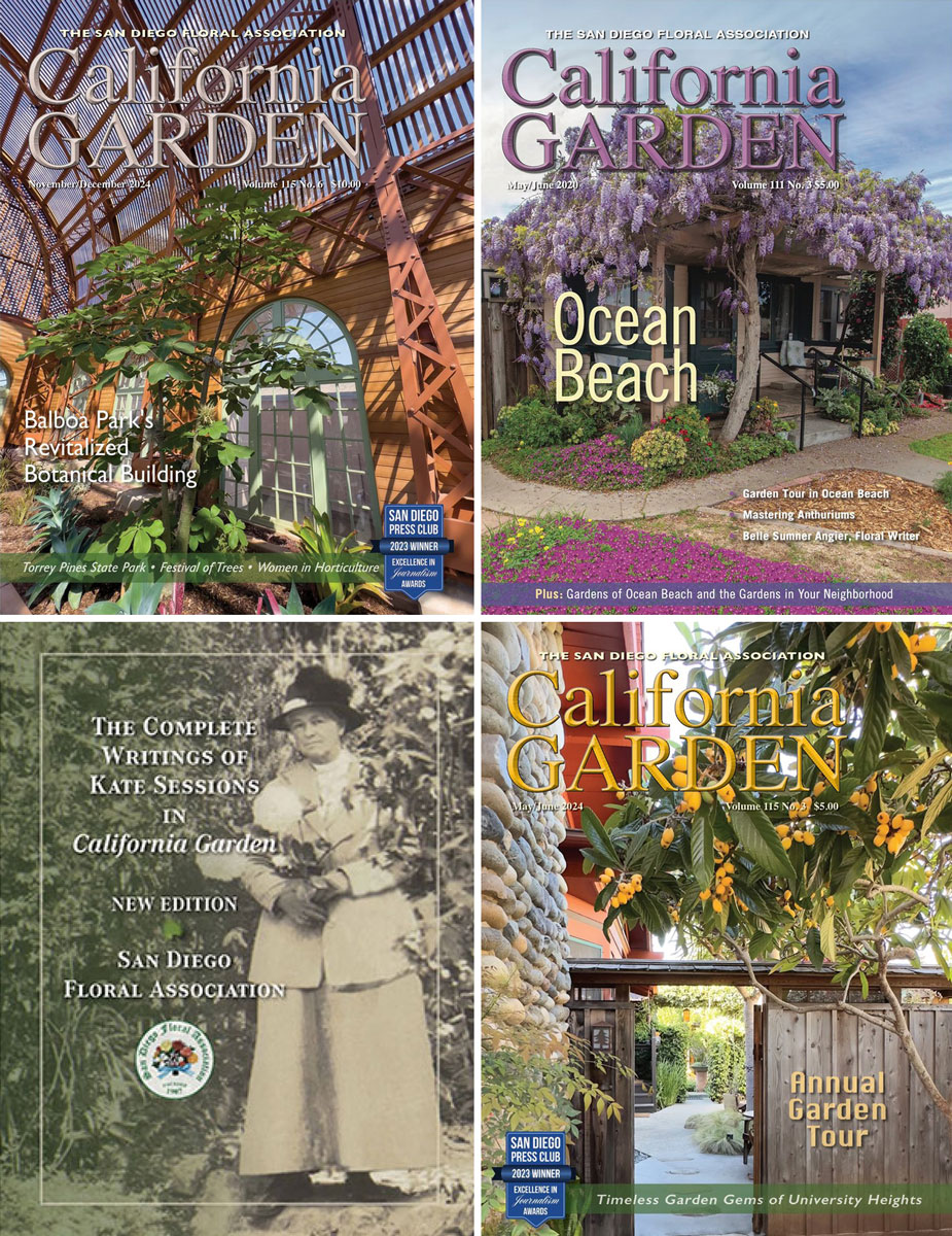 As a well-known authority on the life and work of Kate Olivia Sessions, the still-influential early San Diego nurserywoman and horticulturist, Nancy is currently compiling a definitive bibliography and website on Sessions to share her extensive research. Her goal is to ensure that one of San Diego’s most important figures in landscape and plant history receives the in-depth, scholarly attention she deserves.