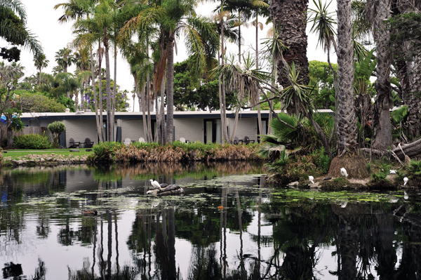 Built in 1962 on a manmade island in Mission Bay, the resort was the dream of film producer Jack Skirball, who brought his Hollywood storytelling to the design and concept of a “South Seas” village. A design team led by Eldridge “Ted” Spencer, of the California firm of Spencer and Lee crafted an environment where whimsy met thoughtful site planning. Telephone poles driven deep into the fill dirt supported charming one-story bungalows arranged around lagoons, tropical gardens, and a network of meandering paths and delightful bridges.